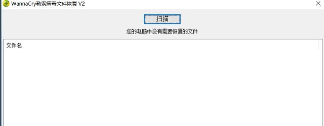 ![]() 當(dāng)完成了WananCry勒索病毒文件恢復(fù)工具后,將彈出如圖所示的窗口,在此直接點(diǎn)擊“掃描”按鈕,以便對電腦中被勒索病毒感染而加密的文件進(jìn)行恢復(fù)操作。