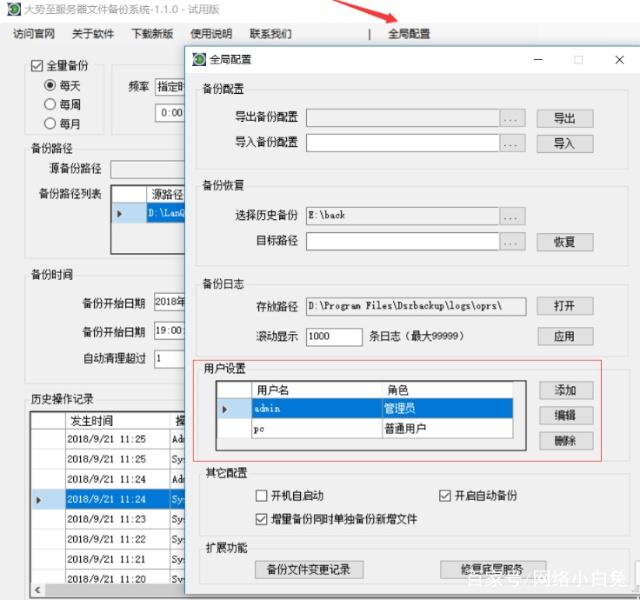 ![]() 利用大勢至服務(wù)器文件備份系統(tǒng)除了可以對文件進(jìn)行備份操作外,還可以針對備份配置信息、備份文件及其存儲位置進(jìn)行管理,同時(shí)還可以對用戶進(jìn)行設(shè)置,此外還可以對備份文件變更進(jìn)行記錄。