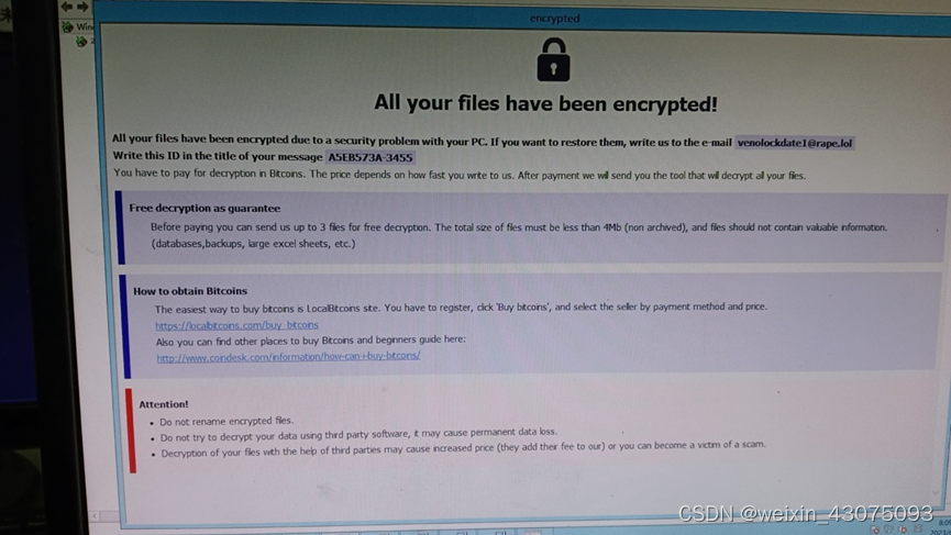 4、某企業(yè)數(shù)據被加密,如下圖所示: