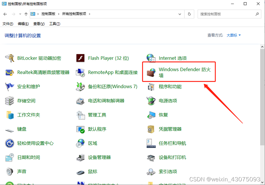 1、打開控制面板后,再打開windows Defender防火墻,如下圖: