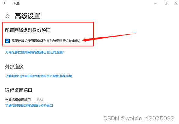 3、勾選“需要計算機使用網絡級別身份驗證進行連接”