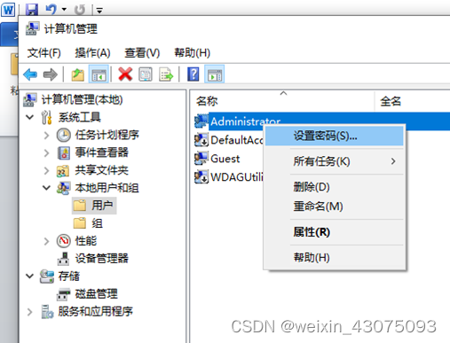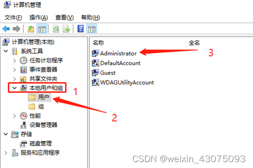 (2)點開“本地用戶和組”,用戶,右擊administrator(注:家庭版的操作系統(tǒng)無被遠程桌面控制的功能,但可以通過遠程命令控制別的電腦)