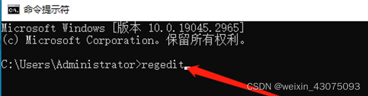 5、還是在這臺電腦上繼續(xù)操作,通過運行命令,打開注冊表編輯器,如下圖: