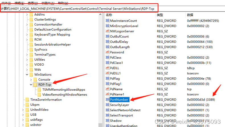 HKEY_LOCAL_MACHINE\SYSTEM\CurrentContro1Set\Control\Tenninal Server\WinStations\RDP-Tcp