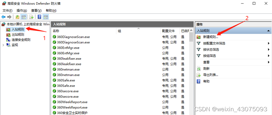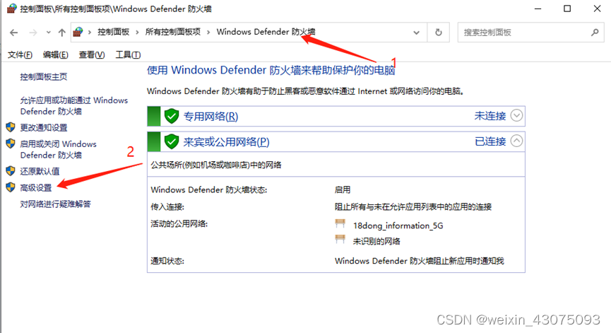 (1)打開控制面板,windows Defender防火墻,高級設置,如下圖: