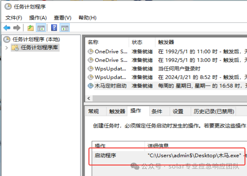 【W(wǎng)in+R】打開(kāi)運(yùn)行框,輸入【control】命令打開(kāi)控制面板,點(diǎn)擊任務(wù)計(jì)劃程序,查看計(jì)劃任務(wù)屬性,便可以發(fā)現(xiàn) 木馬文件的路徑。