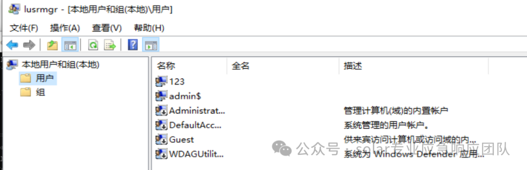 DefaultAccount:這是Windows 10中的一個(gè)預(yù)設(shè)賬戶,通常在新安裝的系統(tǒng)中會(huì)出現(xiàn)。它在用戶首次登錄前提供了一個(gè)臨時(shí)的、有限的用戶體驗(yàn)。這個(gè)賬戶通常不顯示在登錄屏幕上,并且沒(méi)有密碼保護(hù)。WDAGUtilityAccount:這是Windows Defender Application Guard (WDAG) 的服務(wù)賬戶。WDAG是Windows 10的一個(gè)安全功能,允許用戶在隔離的環(huán)境中運(yùn)行不受信任的應(yīng)用程序和瀏覽器會(huì)話,以防止惡意軟件對(duì)主操作系統(tǒng)的影響。WDAGUtilityAccount是與這項(xiàng)功能相關(guān)聯(lián)的服務(wù)賬戶,用于管理和運(yùn)行WDAG的相關(guān)進(jìn)程。Guest:Guest賬戶是Windows操作系統(tǒng)中的一個(gè)標(biāo)準(zhǔn)設(shè)置,用于提供有限的訪客或臨時(shí)用戶訪問(wèn)權(quán)限。Guest賬戶通常處于限制模式,擁有最低限度的系統(tǒng)權(quán)限,并且通常無(wú)法安裝軟件或更改系統(tǒng)設(shè)置。它設(shè)計(jì)用于短期或不常用的臨時(shí)訪問(wèn)。