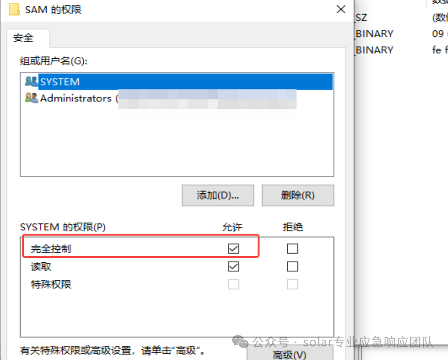 默認(rèn)無(wú)法查看該選項(xiàng)內(nèi)容,需右鍵權(quán)限,勾選為完全控制后確認(rèn),刷新即可看到