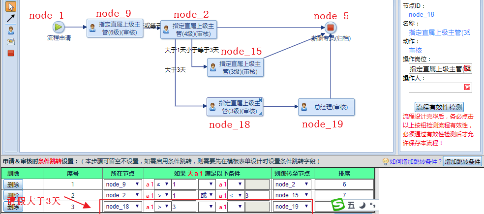 ![]() 像上面這個流程圖的跳轉(zhuǎn)條件設置就是錯誤的,node_9和node_18都只有一個流向,明顯不需要設置條件跳轉(zhuǎn),node_2有三個流向,只有node_2才需要設置跳轉(zhuǎn)條件。 相關(guān)教程: