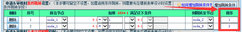 3、有兩個或兩個以上走向的流程節(jié)點才需要設置跳轉(zhuǎn)條件,只有一個走向的節(jié)點無需設置條件跳轉(zhuǎn)。