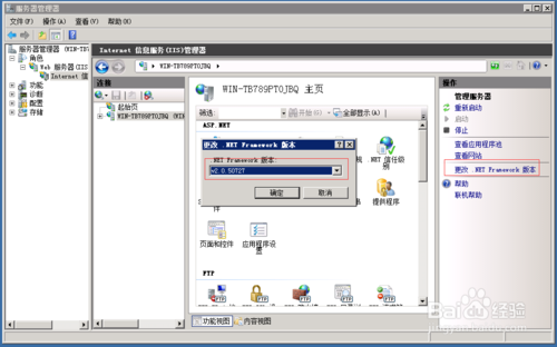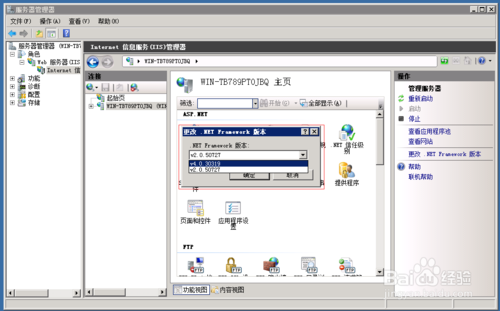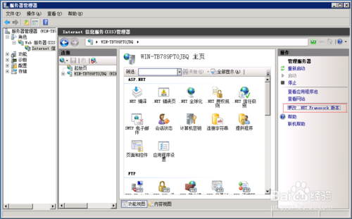 5. 好了,下面進(jìn)入主題,怎么把IIS .net framework 2.0版本升級到4.0呢,我們打開IIS,同樣在最右側(cè)找到更改.net framework版本