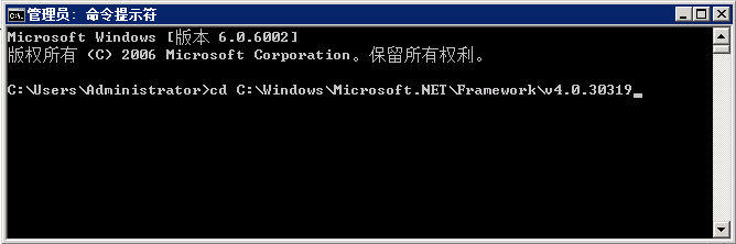 ?、蹐?zhí)行命令"cd C:\Windows\Microsoft.NET\Framework\v4.0.30319",進入到"C:\Windows\Microsoft.NET\Framework\v4.0.30319"目錄,如圖:
