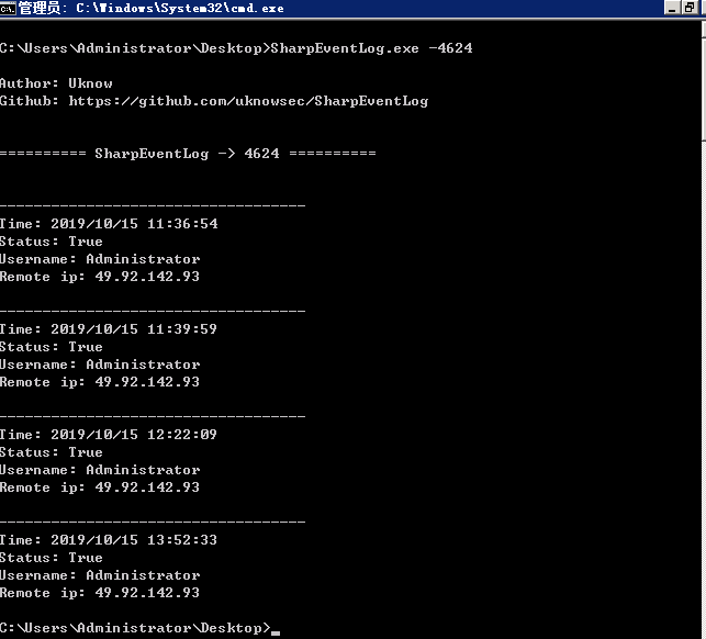 【C#】查詢Windows服務(wù)器遠(yuǎn)程桌面RDP協(xié)議登錄事件,獲取并導(dǎo)出當(dāng)前服務(wù)器用戶登錄記錄參考:https://github.com/uknowsec/SharpEventLog簡介:讀取登錄過本機(jī)的登錄失敗或登錄成功的所有計算機(jī)信息,在內(nèi)網(wǎng)滲透中快速定位運(yùn)維管理人員。輸出:登錄時間、源IP地址、域名、用戶名、是否成...