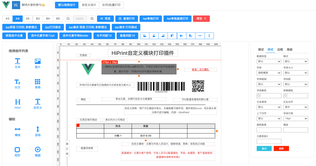 項(xiàng)目介紹vue-plugin-hiprint是一個(gè)基于Vue2和Vue3的開源打印插件,它提供了打印、打印設(shè)計(jì)、可視化設(shè)計(jì)器、報(bào)表設(shè)計(jì)、元素編輯以及可視化打印編輯等功能。該項(xiàng)目旨在方便開發(fā)者在Vue項(xiàng)目中快速集成打印功能,同時(shí)提供豐富的可視化設(shè)計(jì)工具,以滿足不同的打印需求。功能特點(diǎn)拖拽設(shè)計(jì):支持通過拖拽方式設(shè)計(jì)打印模板...