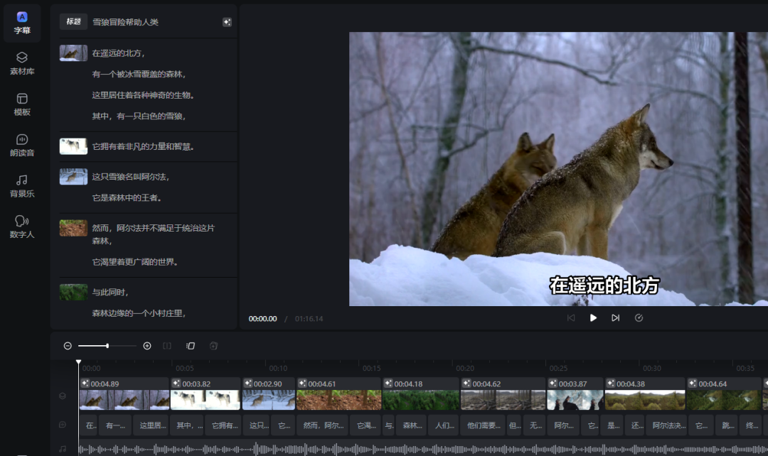 把這篇故事一鍵生成視頻在遙遠(yuǎn)的北方,有一個被冰雪覆蓋的森林,這里居住著各種神奇的生物。其中,有一只白色的雪狼,它擁有著非凡的力量和智慧。這只雪狼名叫阿爾法,它是森林中的王者。然而,阿爾法并不滿足于統(tǒng)治這片森林,它渴望著更廣闊的世界。與此同時,森林邊緣的一個小村莊里,人們正面臨著巨大的困境。他們需要將一根巨大的木頭運回村...