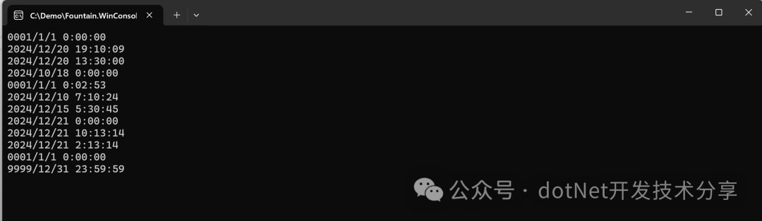 前言在軟件開發(fā)中,有許多需求需要在應(yīng)用程序中處理日期和時間。在.NET中DateTime類是處理日期和時間的基礎(chǔ),它表示一個日期和時間。本文我們將通過示例了解DateTime的使用。DateTimeDateTime類包含了日期、時間、區(qū)域性、本地化、毫秒等,其值的范圍介于0001年01月01日00:00:00時~999...