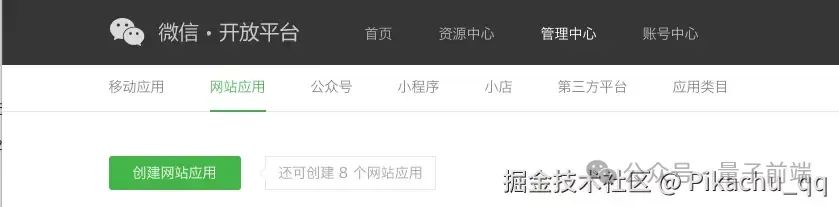 一、微信開放平臺(tái)申請(qǐng)網(wǎng)站應(yīng)用1、微信開放平臺(tái)[1]中注冊(cè)開發(fā)者賬號(hào),在管理中心選擇網(wǎng)站應(yīng)用,創(chuàng)建相關(guān)應(yīng)用。按照要求準(zhǔn)備好資料,提交審核即可,一般2天左右就會(huì)有審核結(jié)果。注意:基本信息-應(yīng)用官網(wǎng):填寫公司官網(wǎng)即可;開發(fā)信息-授權(quán)回調(diào)域:只能填寫一個(gè)回調(diào)域,無需帶上http或者h(yuǎn)ttps,這個(gè)配置十分重要,用戶掃碼成功后,...