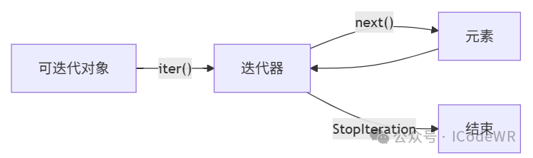 知識導(dǎo)圖1.迭代協(xié)議1.1核心概念迭代協(xié)議是Python中用于支持循環(huán)和迭代的底層機制,由兩個核心組件組成:可迭代對象(Iterable):實現(xiàn)了__iter__()方法的對象迭代器(Iterator):實現(xiàn)了__iter__()和__next__()方法的對象1.2可迭代對象vs迭代器特性可迭代對象迭代器核心方法__...
