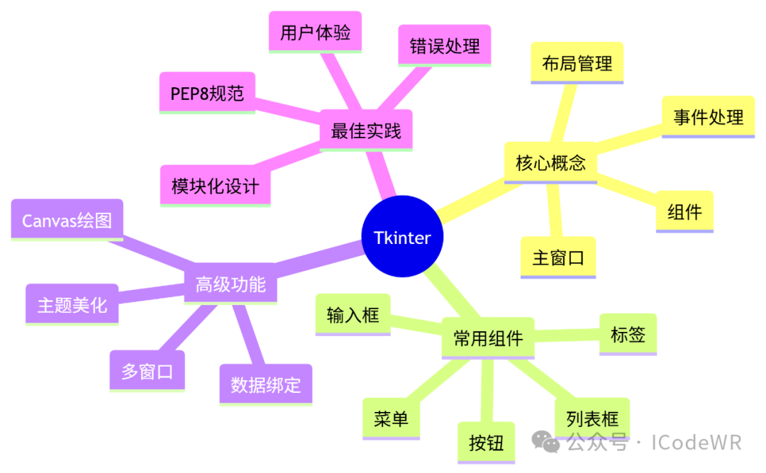 一、概述與學(xué)習(xí)路線圖1.1圖形化編程簡介圖形用戶界面(GUI)編程允許開發(fā)者創(chuàng)建可視化應(yīng)用程序,通過窗口、按鈕、菜單等控件與用戶交互。Python提供了多個GUI庫,其中最常用的是Tkinter(標(biāo)準(zhǔn)庫)、PyQt、wxPython等。1.2Tkinter學(xué)習(xí)路線圖二、Tkinter基礎(chǔ)知識2.1Tkinter基本結(jié)構(gòu)...