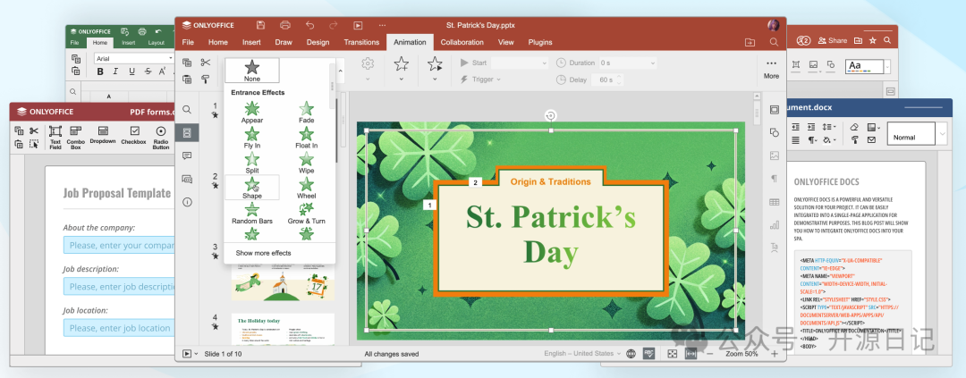 你是否還在為團(tuán)隊(duì)在線協(xié)作辦公而苦惱?文檔格式不兼容、編輯歷史混亂、遠(yuǎn)程辦公效率低?還是還在用收費(fèi)的Office365?試試ONLYOFFICEDocs吧!這款Star數(shù)破5k的開(kāi)源神器,將在線文檔編輯和團(tuán)隊(duì)協(xié)作帶進(jìn)全新紀(jì)元。支持實(shí)時(shí)協(xié)作、深度兼容MSOffice格式,還自帶豐富插件擴(kuò)展,絕對(duì)是你團(tuán)隊(duì)辦公的強(qiáng)力助手!項(xiàng)目...