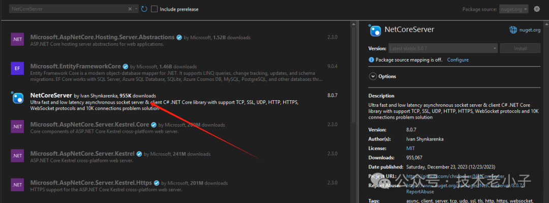 NetCoreServer是一個(gè)強(qiáng)大的.NETCore網(wǎng)絡(luò)服務(wù)器庫,專為構(gòu)建高性能的TCP/UDP服務(wù)器和客戶端而設(shè)計(jì)。它提供了一套簡單而高效的API,使開發(fā)者能夠輕松創(chuàng)建各種網(wǎng)絡(luò)應(yīng)用,如HTTP服務(wù)器、WebSocket服務(wù)器、TCP和UDP服務(wù)器等。安裝要在你的.NETCore項(xiàng)目中使用NetCoreServer,...