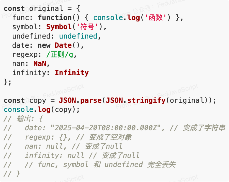 在JavaScript開發(fā)中,對象的深拷貝是一個(gè)常見需求。很多開發(fā)者習(xí)慣使用JSON.parse(JSON.stringify(obj))這個(gè)一行代碼解決方案來實(shí)現(xiàn)深拷貝,但這種方法存在許多令人意想不到的問題。本文將揭示這種方法的缺陷,并介紹幾種更可靠的深拷貝替代方案。JSON.stringify的致命缺陷JSON.p...