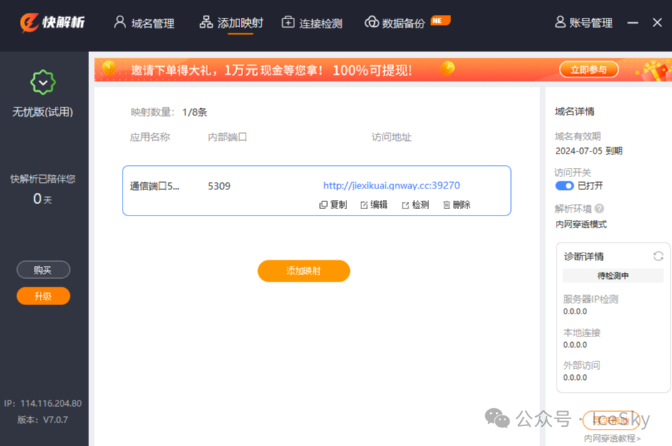 內(nèi)網(wǎng)穿透,也稱為NAT穿透,是一種將位于內(nèi)網(wǎng)的設(shè)備或服務(wù)暴露到公網(wǎng),使得外部網(wǎng)絡(luò)能夠訪問內(nèi)網(wǎng)資源的技術(shù)手段。常見實現(xiàn)方法端口映射原理:在路由器或防火墻等網(wǎng)絡(luò)設(shè)備上進行配置,將外部網(wǎng)絡(luò)的特定端口與內(nèi)部網(wǎng)絡(luò)中設(shè)備的特定端口進行映射。當外部網(wǎng)絡(luò)請求訪問路由器的特定端口時,路由器會將請求轉(zhuǎn)發(fā)到內(nèi)部網(wǎng)絡(luò)中對應(yīng)的設(shè)備端口上,從而實...