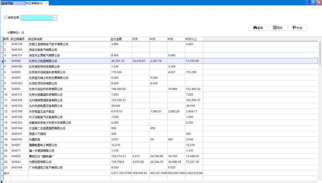 打開路徑:【主菜單】-【采購】-【報表】-【供應(yīng)商賬齡分析表】大多數(shù)企業(yè)只重視對客戶的應(yīng)收款做賬齡分析,其實供應(yīng)商的應(yīng)付賬款賬齡分析也同樣重要。可以對企業(yè)有多少應(yīng)付款,具體拖欠時間有個大致了解。企業(yè)可以了解應(yīng)付賬款的結(jié)構(gòu)和變化,分析應(yīng)付賬款的風險和優(yōu)化措施,確保供應(yīng)鏈資金安全,方便財務(wù)合理安排資金。供應(yīng)商賬齡分析表就是...