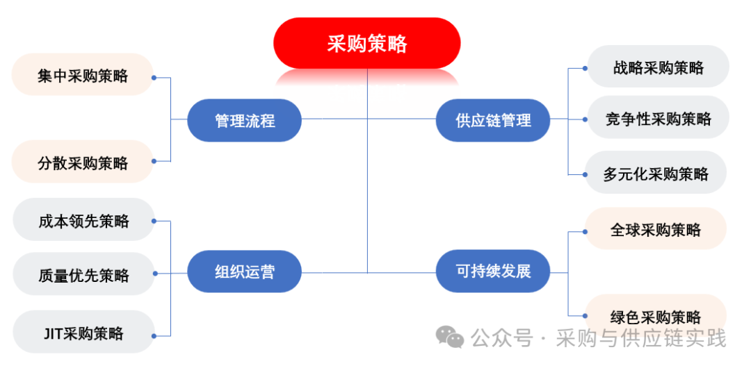 采購策略是指企業(yè)在進(jìn)行采購活動時(shí)所采用的一系列計(jì)劃和決策方法。包括如何選擇供應(yīng)商、確定采購數(shù)量、管理采購成本、優(yōu)化供應(yīng)鏈等方面的管理方式。采購策略的目的是確保企業(yè)能夠以合適的價(jià)格、質(zhì)量和時(shí)間獲取所需的物資或服務(wù),以支持其業(yè)務(wù)運(yùn)營和戰(zhàn)略目標(biāo)。以下是一些常見的采購策略:一、從品類管理和組織流程角度區(qū)分。1、集中采購。將采購...