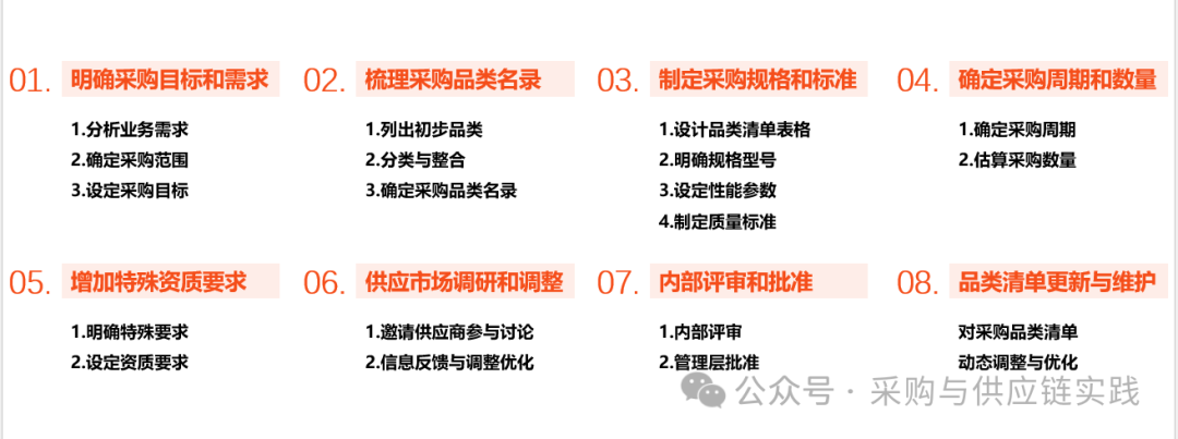 采購品類清單是采購活動(dòng)中最重要的輸入項(xiàng)之一,品類清單在集中采購過程中扮演著至關(guān)重要的角色。它不僅是采購活動(dòng)的基礎(chǔ),也是確保采購過程高效、準(zhǔn)確和有序進(jìn)行的關(guān)鍵工具。一、采購品類清單的定義。采購品類清單通常是一份詳細(xì)的文檔或列表,用于記錄企業(yè)在采購活動(dòng)中所需的各種物品或服務(wù)的分類和具體項(xiàng)目。它是一份系統(tǒng)化的文件,其中包含了...