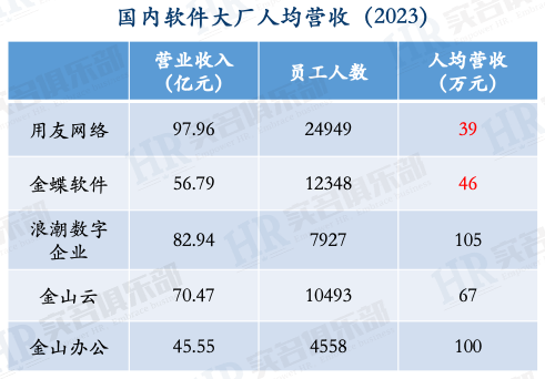 便于比較,我們將有SaaS、企業(yè)服務(wù)的金山兩家公司、浪潮集團(tuán)旗下的“浪潮數(shù)字企業(yè)”,跟用友和金蝶做一下人效對比。本文營業(yè)收入、員工薪酬等數(shù)據(jù),均來自各公司2023年財報。如圖所見,用友和金蝶,人效相差不大,浪潮數(shù)字企業(yè)和金山辦公則有明顯領(lǐng)先。1、營收情況從收入規(guī)模來看,2023年,用友收入即將突破100億,保持行業(yè)領(lǐng)先...