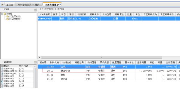 進(jìn)入工程管理-》BOM管理:前面那個(gè)是成品編碼,后面是原材料編碼,輸入原材料編碼就可以查看哪些BOM會(huì)用到這個(gè)材料。