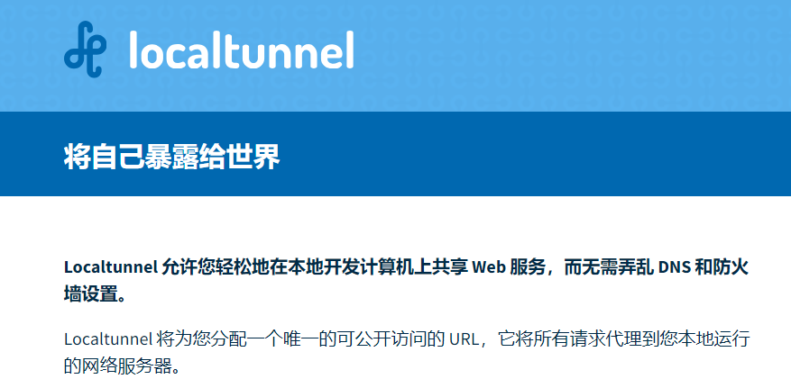 今天為大家?guī)硪豢铋_源免費(fèi)的內(nèi)網(wǎng)穿透工具:localtunnel,基于nodejs實(shí)現(xiàn),無需修改DNS和防火墻設(shè)置,方便快捷的將內(nèi)網(wǎng)服務(wù)暴露到外網(wǎng),為開發(fā)人員、測(cè)試人員以及需要分享本地項(xiàng)目的人提供實(shí)時(shí)的公網(wǎng)訪問方式,以便于測(cè)試和共享!目前該項(xiàng)目已在GitHub斬獲17.9kstars,1.3kforks,非常實(shí)用!80...