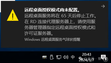 我們前面介紹了如何實(shí)現(xiàn)WindowsServer的多用戶登錄(WindowsServer調(diào)整策略實(shí)現(xiàn)999999個(gè)遠(yuǎn)程用戶用時(shí)登錄),但是有一個(gè)實(shí)用性的問(wèn)題,那就是只有119天的臨時(shí)授權(quán)。比如我現(xiàn)在登錄時(shí),就會(huì)冒泡提醒我,“遠(yuǎn)程桌面服務(wù)將在65天后停止工作”。其實(shí)這個(gè)問(wèn)題也好解決,修改注冊(cè)表就好了。具體做法如下:首先,...