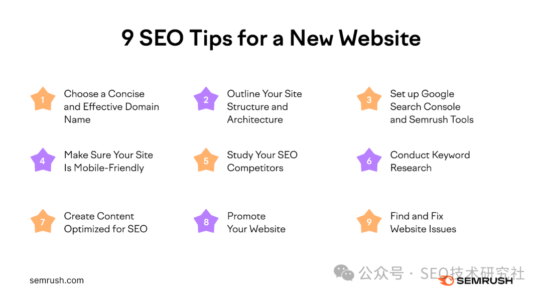 如果您正在構(gòu)建一個新網(wǎng)站。而且您希望它在Google搜索結(jié)果中排名靠前。但是,您如何確保您的網(wǎng)站從一開始就對SEO友好呢?這就是本指南的全部內(nèi)容。我們將引導(dǎo)您完成改善新網(wǎng)站SEO所需采取的確切步驟。提示:創(chuàng)建一個免費(fèi)的Semrush帳戶以按照本指南中的步驟進(jìn)行操作。如何為新網(wǎng)站做SEO查看我們?yōu)槟男戮W(wǎng)站提供的九大SE...