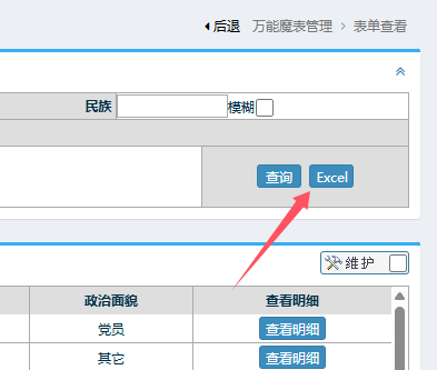 設計好的萬能魔表明細表如何導出為excel格式文件??注意頁面上有一個Excel導致按鈕,點擊即可。