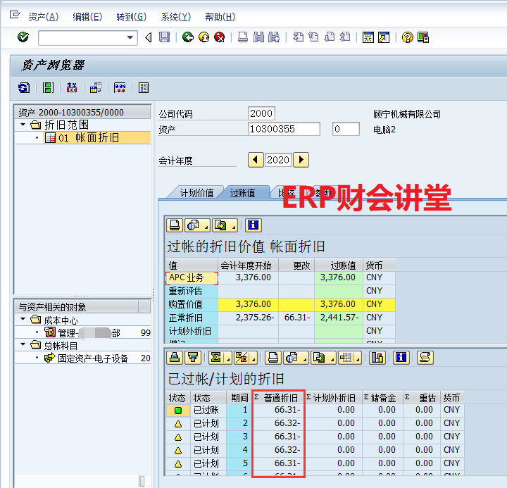 資產(chǎn)報(bào)廢是資產(chǎn)管理(AM)的常見業(yè)務(wù),資產(chǎn)報(bào)廢后殘值計(jì)入固定資產(chǎn)清理科目,后續(xù)根據(jù)實(shí)際情況進(jìn)行處理。本文演示資產(chǎn)報(bào)廢的流程,以及效果。AW01N查看固定資產(chǎn)10300355如下,接下來對(duì)其進(jìn)行報(bào)廢處理,報(bào)廢日期為2020年2月27日。根據(jù)會(huì)計(jì)準(zhǔn)則,固定資產(chǎn)報(bào)廢當(dāng)月計(jì)提折舊;因此,資產(chǎn)報(bào)廢后,從2020年3月應(yīng)該不再計(jì)提...