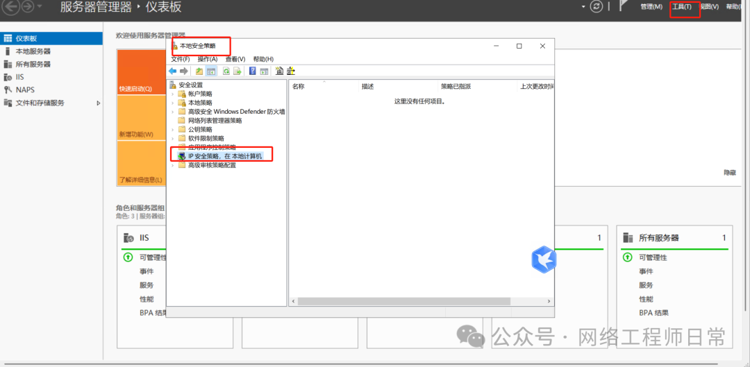 windows只想封堵部分端口,但是不想打開防火墻,可以通過IP安全策略進(jìn)行限制。1.打開安全策略頁(yè)面,選擇IP安全策略2.右鍵右側(cè)空白處,新建ip安全策略3.點(diǎn)擊下一步,輸入安全策略名稱4.新建完成后,會(huì)彈出當(dāng)前策略,點(diǎn)擊添加5.下一步到IP篩選器時(shí),點(diǎn)擊添加此處描述可以不寫。填寫篩選器名稱,點(diǎn)擊添加此處源地址可以根...