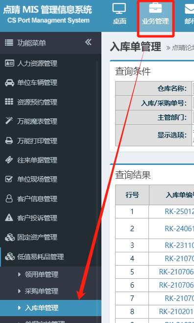 點晴OA-低耗品管理-貨品采購單入庫操作