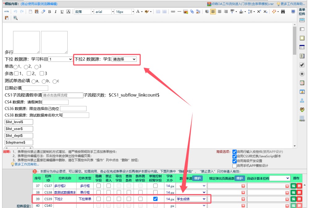 雙擊下拉框控件,在彈出的編輯框中填入需要下來選擇的項目:更多工作流教程參見:http://workflow.oa22.cn