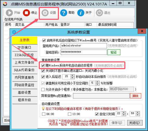 在“主參數(shù)”中,勾選“隨Windows系統(tǒng)開機自動啟動本程序”,然后保存即可。其他參...