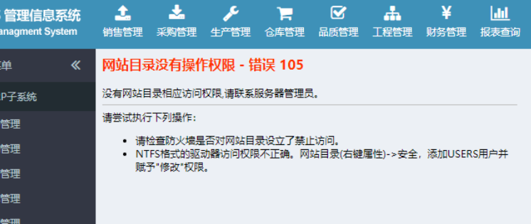 在使用點(diǎn)晴OA時(shí),提示:網(wǎng)站目錄沒(méi)有操作權(quán)限錯(cuò)誤105,如何解決?