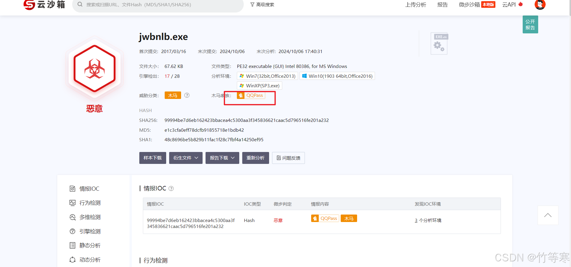 病毒背景簡(jiǎn)介:Win32.PSWTroj.QQPass,名為:【QQ偽裝盜號(hào)者】是一種QQ盜號(hào)木馬,它會(huì)注入用戶(hù)電腦的系統(tǒng)進(jìn)程中運(yùn)行,盜取病毒作者指定的帳號(hào)和密碼以及其號(hào)碼的其他信息。