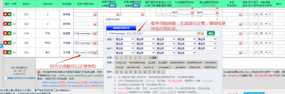 在自建表單設計中字段需要用到合計或平均函數(shù)時,存在bug,Average無效,但sum可以正常使用,如何解決??