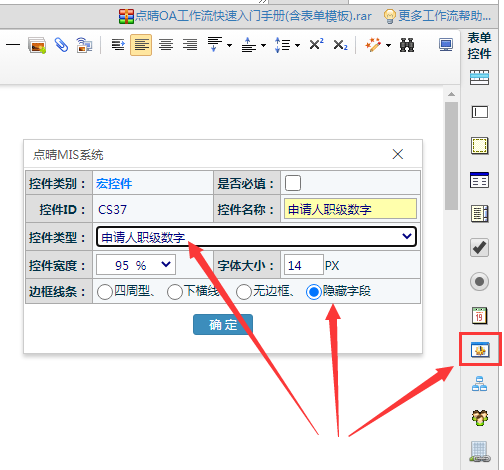 在工作流模板設(shè)計(jì)時(shí),插入一個(gè)數(shù)字職級宏控件字段,設(shè)置為隱藏,可用于各種條件跳轉(zhuǎn)或其他判斷。