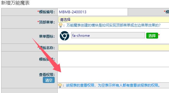 萬能魔表必須管理員才能看到么萬能魔表只有管理員才能看到和維護。如果是想要讓其他人看到做好的報表,需要在新增萬能魔表時設(shè)置查看權(quán)限:然后選擇是否在頂部菜單顯示,登錄后,有權(quán)限的人在頂部就能看到萬能魔表了。相關(guān)教程:萬能魔表創(chuàng)建的模塊是如何實現(xiàn)頂部菜單或左邊菜單效果的?http://10315.oa22.cn