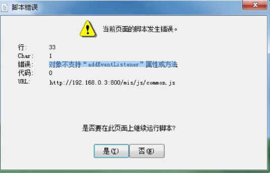 點晴MIS信息通PC客戶端打開頁面時提示錯誤:對象不支持“adiventListener”屬性或方法,如何解決?下載點晴MIS系統(tǒng)最新版升級包升級即可:http://u.oa22.cn