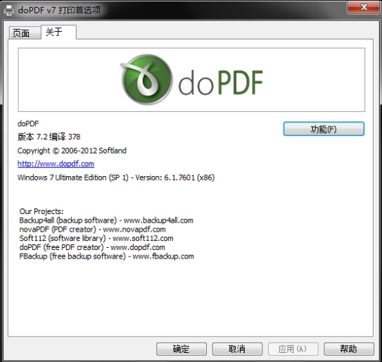 doPDF是一個虛擬打印機程序,安裝運行它后,會生成一個虛擬的打印機,打印的時候選擇它,可以生成pdf格式的文件??赏瑫r運用于商業(yè)和個人的免費PDF轉(zhuǎn)換器??蓪ord等格式文件轉(zhuǎn)換為PDF的工具,它把自己安裝為一款打印機驅(qū)動,允許從任意一款有打印輸出的Windows程序中打印,還包含縮放,質(zhì)量定義和頁面大小定義等功能...