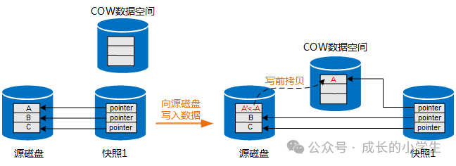 1.什么是快照SNIA(存儲(chǔ)網(wǎng)絡(luò)行業(yè)協(xié)會(huì))對快照(Snapshot)的定義是:關(guān)于指定數(shù)據(jù)集合的一個(gè)完全可用拷貝,該拷貝包括相應(yīng)數(shù)據(jù)在某個(gè)時(shí)間點(diǎn)(拷貝開始的時(shí)間點(diǎn))的映像??煺湛梢允瞧渌硎镜臄?shù)據(jù)的一個(gè)副本也可以是數(shù)據(jù)的一個(gè)復(fù)制品。快照的價(jià)值有以下三點(diǎn):快速備份/恢復(fù):快照可迅速生成,并可用作傳統(tǒng)備份和歸檔的數(shù)據(jù)源,縮...