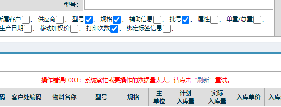 【點(diǎn)晴模切ERP】將銷售單導(dǎo)出Excel時(shí),提示操作錯(cuò)誤E003:系統(tǒng)繁忙或要操作的數(shù)量太大,請(qǐng)點(diǎn)擊刷新重試,刷新后仍然還是如此,如何解決?提示很清楚,就是當(dāng)前要處理的數(shù)據(jù)量太大,而當(dāng)前服務(wù)器硬件的CPU、內(nèi)存、帶寬等資源不足,導(dǎo)致無(wú)法成功處理。需要通過(guò)縮小查詢范圍來(lái)解決,一般通過(guò)減少時(shí)間段(改為按照月度或周)、增加限...